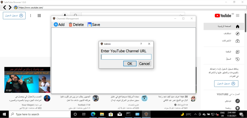 برنامج بسيط يقوم بإتاحة الوصول لقنوات محددة على Youtube مع حظر باقي القنوات بشكل كامل،